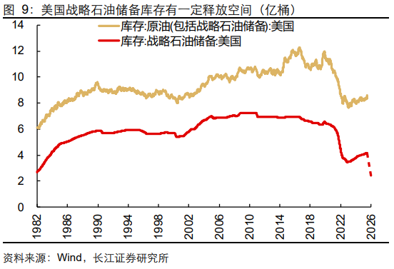 另一方面,"页岩革命”推动美国从石油净进口国转为出口国,油价冲击对整体经济的传导或弱于上世纪;同时,美国战略石油储备库存有一定释放空间,能在一定幅度上平抑油价波动。