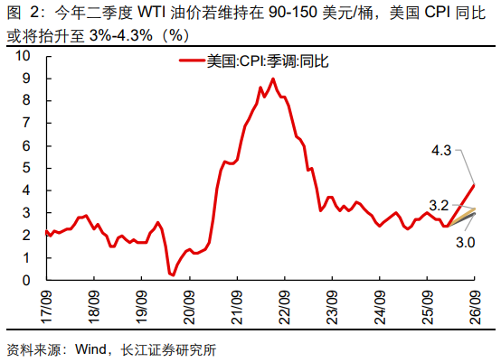 核心观点 ]article_adlist-->1、若今年二季度WTI油价维持在90-150美元/桶,美国CPI中枢或抬升至3%/4%左右。