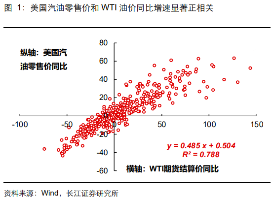 1)一是油价上涨将直接推升汽油价格。从历史经验看,美国汽油零售价和WTI油价同比增速显著正相关。汽油在美国CPI中的权重约2.8%左右,若今年二季度WTI油价维持在90-150美元/桶,美国CPI同比或将抬升至3%-4.3%。